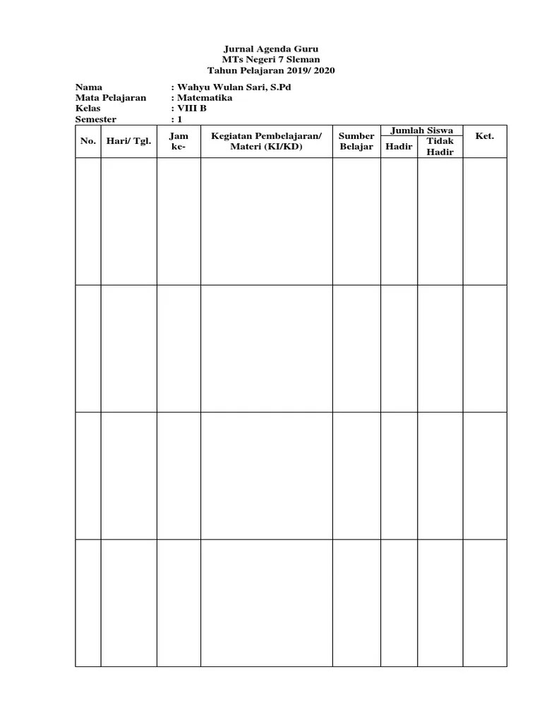 Jurnal Agenda Guru - Format Agenda Harian Guru Bk : Memperkenalkan diri lewat permainan dan kartu nama.. Berikut contoh jurnal harian / agenda harian guru kelas 1 sd/mi kurikulum 2013 revisi 2018 : 16 des, 2020 posting komentar. Clipping is a handy way to collect important slides you want to go back to. Bagi bapak dan / ibu guru, staff pengajar serta siapapun yang saat ini masih memerlukan dan mencari artikel tentang contoh format jurnal guru atau agenda mengajar guru mata pelajaran mts/smp. Setiap guru wajib memiliki jurnal harian sebagai bukti bahwa melaksanakan kegiatan pembelajaran.